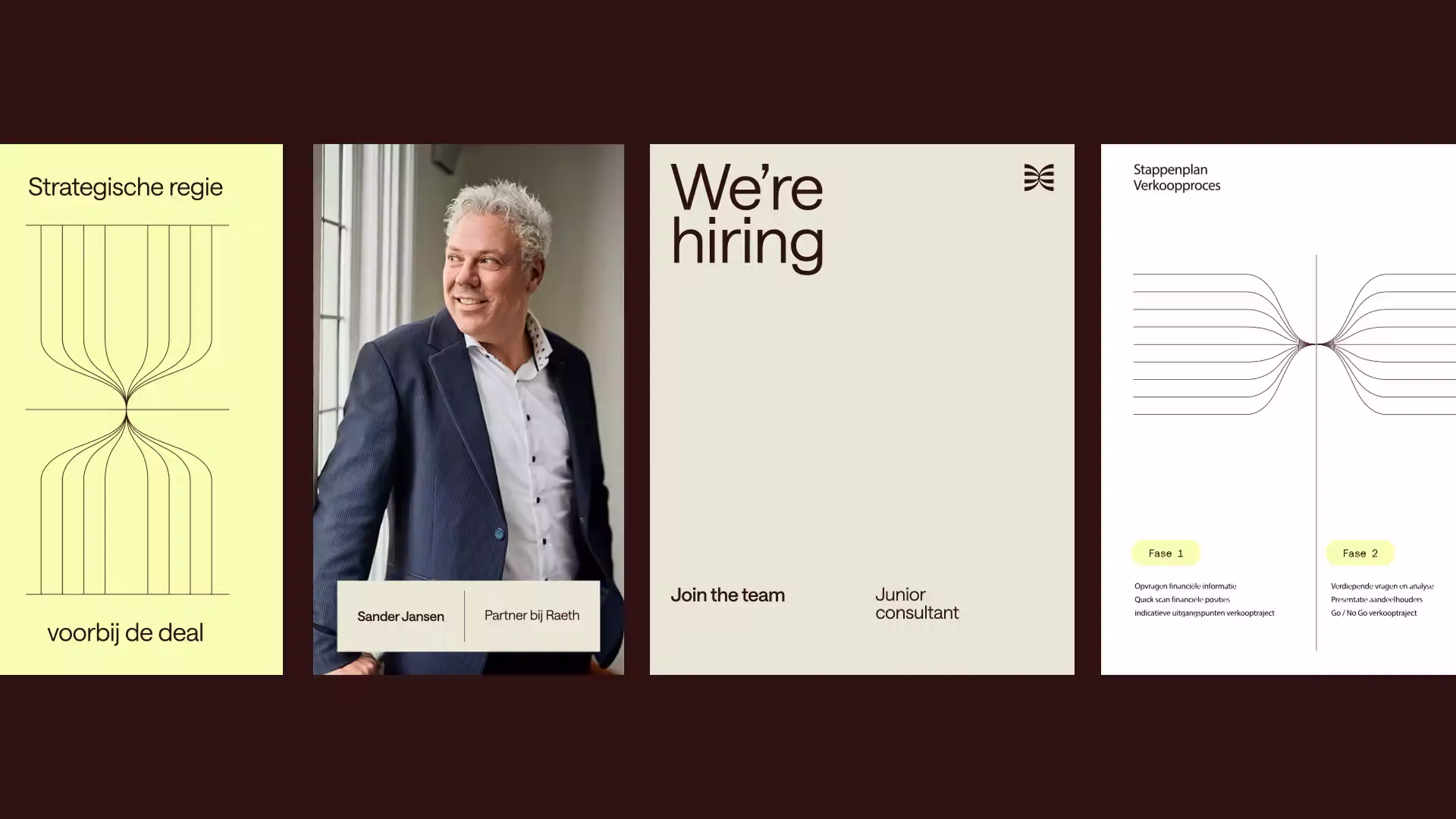 We positioned Raeth as a high-end corporate finance boutique: a partner guiding entrepreneurs in their most important business decisions before, during, and after the deal. From transactional to relational. From intermediary to trusted advisor.